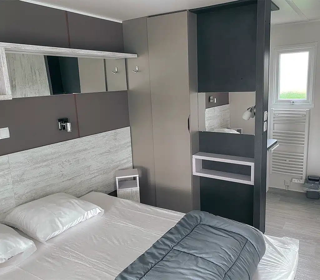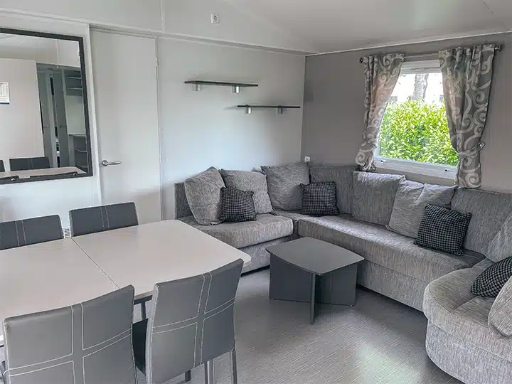 Le mobil-home Tribu avec spa, quant à lui, dispose d’une surface de 80 m² et peut accueillir jusqu’à 12 personnes. Avec ses 6 chambres, 4 salles de bains, 2 cuisines et une grande terrasse avec salon de jardin, il est parfaitement adapté aux groupes ou grandes familles. Son spa privatif permet à chacun de profiter d’un moment de détente dans un cadre calme et chaleureux.